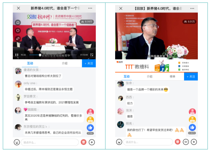 此次直播,獲得愛豬網(wǎng)、中國養(yǎng)豬網(wǎng)、豬易傳媒、牧業(yè)前沿、賽爾傳媒、播恩live六大媒體進行同步轉(zhuǎn)播,更吸引了36+人次的駐足觀看。直播間網(wǎng)友紛紛表示此次直播收獲很多,也在2021年的預(yù)測與展望中摸索到了自己的致富經(jīng)。