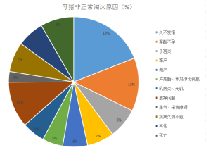 此外,我們可以看一個典型的例子:2015-2016年廣東某規(guī)模豬場(盧偉丁,2016年6月碩士畢業(yè)論文),2015年5月至2016年2月,該場母豬月均存欄1350頭,期間共淘汰母豬485頭,豬場母豬淘汰率為35.93%。由于該場建場不足3年,母豬主動淘汰率為0,被動淘汰率為100%。