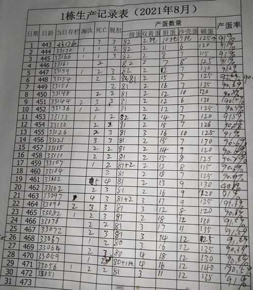 實際蛋雞生產(chǎn)中,20w蛋雞場都在用雜粕日糧,而生產(chǎn)水平也是相當(dāng)?shù)母撸?/span>470日齡產(chǎn)蛋率依然在91%以上。蛋重還能維持在47.0kg一箱(蛋重65克以上),見圖1。