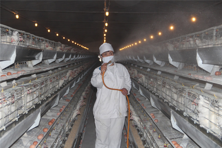 由于冬春交替時(shí)節(jié)天氣仍舊寒冷,畜禽圈舍常常處于封閉狀態(tài),空氣流通性比較差,加之圈舍內(nèi)部陰暗、潮濕、寒冷,因此極易引發(fā)呼吸道傳染病,所以,防止疫病發(fā)生至關(guān)重要。要定期對(duì)畜舍進(jìn)行消毒,保證飼養(yǎng)環(huán)境的清潔衛(wèi)生。推薦每周用過氧乙酸、播恩酸化劑、百毒殺、或者戊二醛對(duì)圈舍消毒一次,消毒劑應(yīng)該交替使用,避免病原菌和病毒對(duì)消毒劑產(chǎn)生耐藥性。每次清理料槽后,使用聚維酮碘對(duì)料槽進(jìn)行消毒。此外為了避免因?yàn)槿说脑驅(qū)е录倚笊?,工作人員每次進(jìn)出畜舍之前,都要到消毒間進(jìn)行消毒,消毒間內(nèi)設(shè)超聲波霧化消毒系統(tǒng),消毒間外以及圈舍外部地面鋪設(shè)生石灰。要經(jīng)常觀察家畜的精神狀態(tài)、食欲、糞便等情況,及時(shí)發(fā)現(xiàn)疫情,及時(shí)治病。