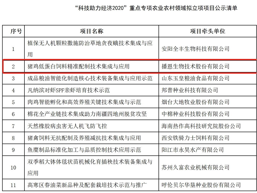 2022年12月22日,農(nóng)業(yè)農(nóng)村部科技教育司組織專家對播恩集團牽頭承擔(dān)的農(nóng)業(yè)農(nóng)村部重點專項研發(fā)項目“豬雞低蛋白飼料精準配制技術(shù)集成與應(yīng)用”舉行了驗收會議。項目順利通過了專家組的評審,并獲得了84.14的優(yōu)異成績。