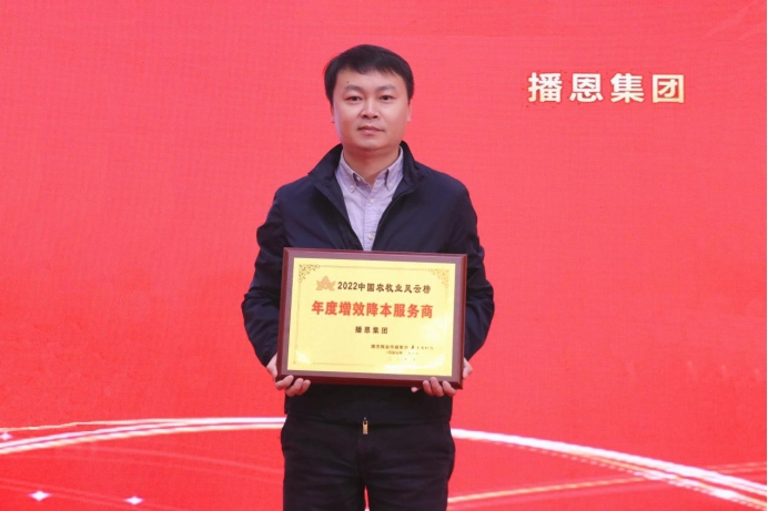 2023年2月21日,由南方報(bào)業(yè)傳媒集團(tuán)、南方農(nóng)村報(bào)社主辦,農(nóng)財(cái)寶典、新牧網(wǎng)承辦的2022第十二屆中國(guó)農(nóng)牧業(yè)風(fēng)云會(huì)在廣州盛大舉行。經(jīng)過(guò)前期激烈的網(wǎng)絡(luò)投票,以及專家、金牌服務(wù)商、協(xié)會(huì)、種豬場(chǎng)評(píng)委綜合評(píng)選,播恩集團(tuán)榮獲2022年度增效降本服務(wù)商”稱號(hào),播恩集團(tuán)華南戰(zhàn)區(qū)總監(jiān)曾總代表公司上臺(tái)領(lǐng)取榮譽(yù)。