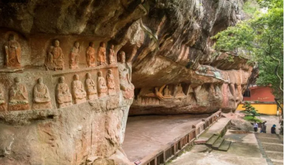 通天巖,位于江西省贛州市章貢區(qū)西北郊6.8千米處,開鑿于唐朝,興盛于北宋,至今保留著唐朝至宋代的石龕造像359尊,宋代至民國的摩崖題刻128品,被譽為“江南第一石窟”。通天巖風景區(qū)由摩沙巖石山組成,是一處典型的丹霞地貌風景區(qū),多天然巖洞,其一巖洞頂有一竅,相傳上可通天,故名。