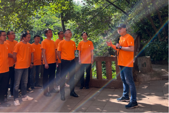 在徒步的過程中,鄒董向眾人講述了陽明文化的“知行合一”,他表示:在創(chuàng)業(yè)的路上,光有想法不行,光埋頭苦干也不行,必須知行合一,有想法就要立即去干,不斷地為之努力奮斗。播恩人頭頂烈日,闊步前行,在青石路上,伴隨著古韻飄香,堅定的信念在心中盛開。
