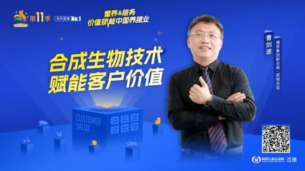 20237月,由中國飼料行業(yè)信息網(wǎng)主辦、國家飼料工程技術(shù)研究中心和中國畜牧獸醫(yī)學(xué)會養(yǎng)豬學(xué)分會聯(lián)合主辦“中國好飼料·第11季”系列直播No.1--營養(yǎng)&服務(wù) 價值賦能中國養(yǎng)豬業(yè)》以線上直播方式開啟,本次直播活動主要圍繞“飼料營養(yǎng)技術(shù)創(chuàng)新與技術(shù)服務(wù)升級”等主題展開,并且進(jìn)行了深入交流探討和案例分析。播恩集團(tuán)副總裁/營銷中心總監(jiān)曹劍波受邀參加了本次直播活動,并作了主題為《合成生物技術(shù)賦能客戶價值》的報告分享。
