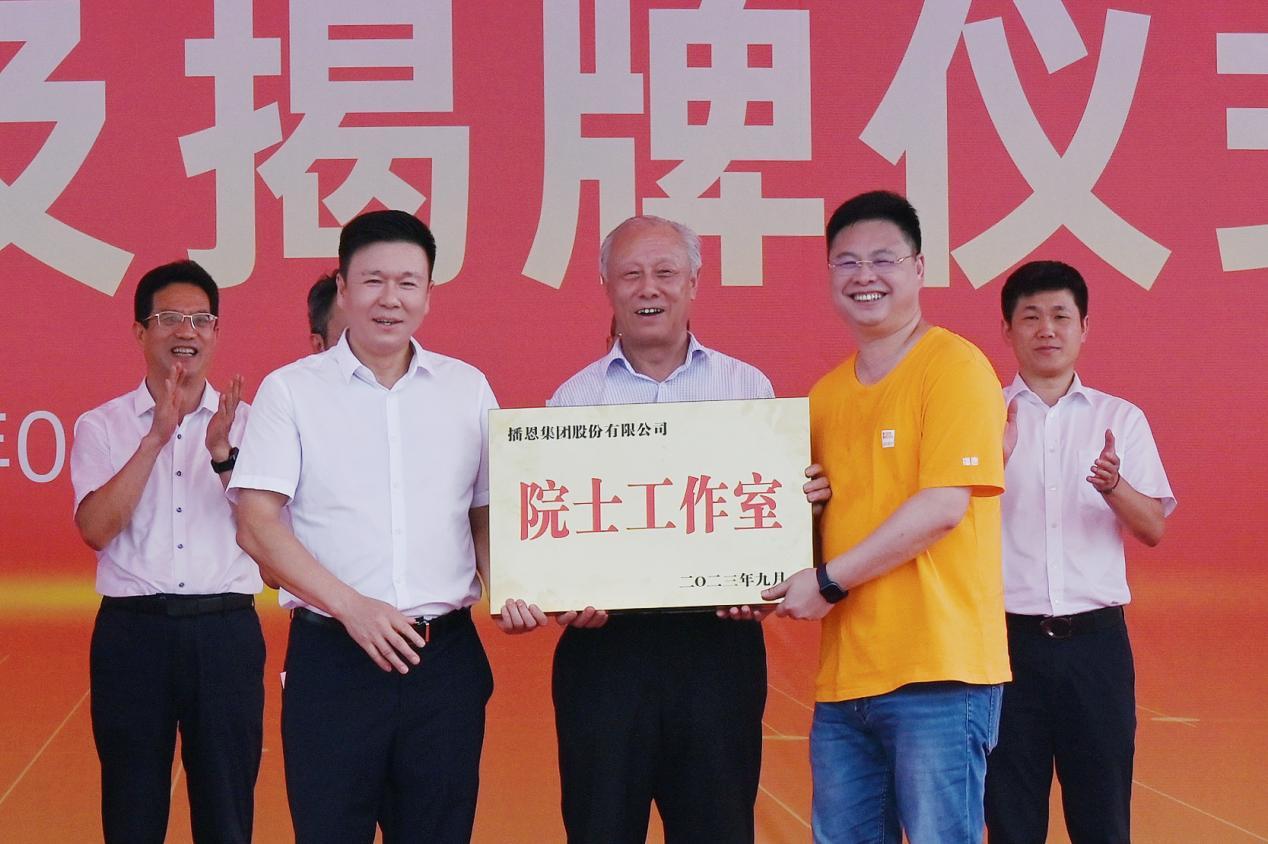 羅瑞華市長為鄒新華董事長授院士工作室牌,李德發(fā)院士見證