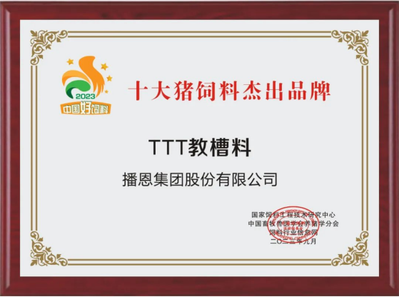 播恩TTT教槽料榮膺“十大豬飼料杰出品牌”:品質(zhì)鑄就品牌,口碑見證實(shí)力