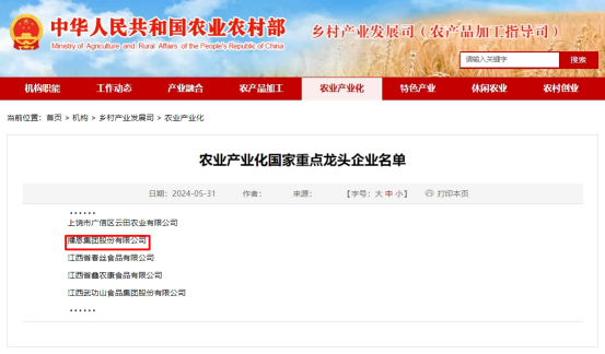 “農(nóng)業(yè)產(chǎn)業(yè)化國(guó)家重點(diǎn)龍頭企業(yè)”是我國(guó)農(nóng)業(yè)企業(yè)中含金量極高的榮譽(yù)之一,由農(nóng)業(yè)農(nóng)村部、國(guó)家發(fā)展和改革委員會(huì)、財(cái)政部、商務(wù)部、中國(guó)人民銀行、國(guó)家稅務(wù)總局、中國(guó)證券監(jiān)督管理委員會(huì)、中華全國(guó)供銷合作總社等8個(gè)國(guó)家部門共同認(rèn)定。其認(rèn)定過(guò)程十分嚴(yán)格,涵蓋企業(yè)申報(bào)、各地推薦、專家評(píng)審、部門審核、媒體公示等多個(gè)環(huán)節(jié),只有最終達(dá)標(biāo)的企業(yè)才可獲此殊榮。