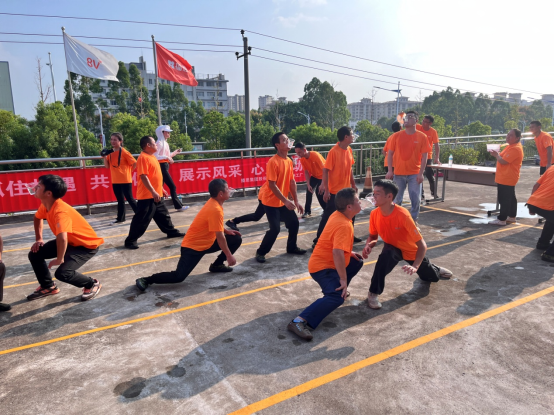下午3點(diǎn)左右,全體人員移步到今天活動(dòng)的主戰(zhàn)場(chǎng)-食堂外大坪臺(tái)舉行本次團(tuán)建的拓展游戲,根據(jù)之前的分組,一共分1、2、3、4、5、6組,每組10人。同4個(gè)游戲項(xiàng)目,積分制分勝負(fù)。