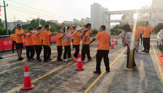4個(gè)游戲項(xiàng)目依次是:“摸石頭過(guò)河”—三塊磚、兩只腳、腳不離磚,達(dá)到終點(diǎn),把磚交給隊(duì)友。每組人員各5人在賽道的兩端進(jìn)行接力。這個(gè)游戲比拼的是身體的協(xié)調(diào)性和意志,看似簡(jiǎn)單,其實(shí)走到后面腳跟就酸痛無(wú)力了,很難抬起。很多員工都是咬牙堅(jiān)持完成比賽;第二個(gè)游俠“杯水傳情”,顧名思義就是只動(dòng)嘴、不動(dòng)手隊(duì)友之間用嘴巴咬住紙杯把水由第一個(gè)隊(duì)員傳遞到最后一個(gè)隊(duì)員那端量筒內(nèi),時(shí)長(zhǎng)5分鐘。這個(gè)游戲考驗(yàn)了團(tuán)隊(duì)成員之間的協(xié)調(diào)、合作意識(shí)還有組長(zhǎng)的人員站位安排。只有安排合理、團(tuán)結(jié)合作好的隊(duì)伍才能把更多的水傳遞到終端,完成比賽。就像我們平時(shí)的工作安排一樣;隨后是“蜈蚣競(jìng)走”,這個(gè)游戲可讓我們的隊(duì)員吃盡了“苦頭”。每組10個(gè)隊(duì)員排成一列蹲下,雙手抓住前一個(gè)人的腳踝,像一只巨型蜈蚣一樣爬動(dòng)前行。每個(gè)人必須步調(diào)一致、克服困難整個(gè)蜈蚣才能順利前行,如果有人節(jié)奏跟不上或者走不動(dòng)了,那這個(gè)蜈蚣就要斷節(jié)了,游戲失敗告終;由于前面3個(gè)游戲結(jié)束后1、4、5、6組積分一樣,最后備用游戲“貪吃蛇”也不出意外地用上了,前面的9個(gè)人全部蒙上眼睛,最后一個(gè)人用拍前面人肩膀的方式傳遞信號(hào)給最前面的領(lǐng)路隊(duì)友,帶領(lǐng)火車(chē)?yán)@樁前進(jìn)。信任你的隊(duì)友,勇敢地往前沖……經(jīng)過(guò)激烈的角逐,由彭書(shū)記帶領(lǐng)的1組獲得了冠軍,6組、5組分獲亞、季軍。排名出來(lái)后,劉總、鄒廠、廖廠分別為獲勝隊(duì)伍頒發(fā)了精心準(zhǔn)備的獎(jiǎng)品。時(shí)而歡聲笑語(yǔ)時(shí)而緊張刺激,通過(guò)這些游戲不僅讓大家更抽象地切身感受“團(tuán)隊(duì)”為何物,也在輕松愉快的氛圍中增進(jìn)了彼此的了解和友誼,讓我們?cè)诮窈蟮墓ぷ髦袛y手并進(jìn)、勵(lì)志感恩、迎接挑戰(zhàn)。