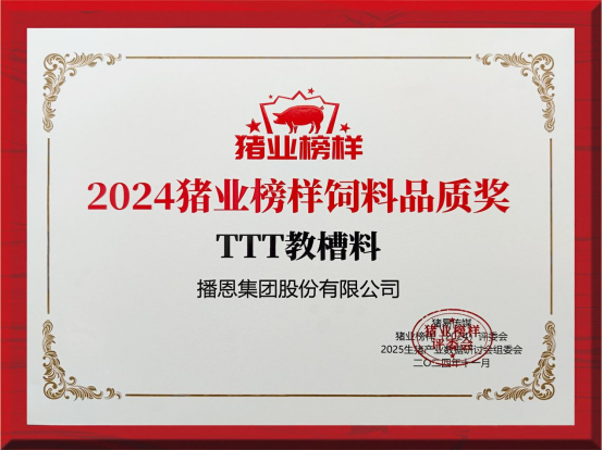 喜訊!播恩集團TTT教槽料榮獲2024豬業(yè)榜樣飼料品質(zhì)獎