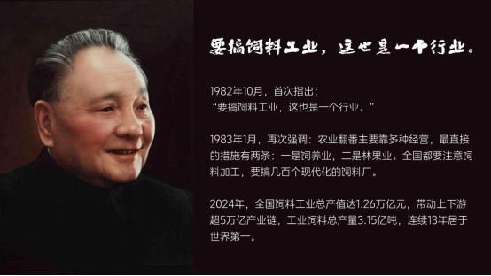 198210月,“要搞飼料工業(yè),這也是一個(gè)行業(yè)”被提出,如今,中國(guó)飼料工業(yè)已成為全球標(biāo)桿。2024年,全國(guó)飼料工業(yè)總產(chǎn)值達(dá)1.26萬億元,帶動(dòng)上下游超5萬億產(chǎn)業(yè)鏈,工業(yè)飼料總產(chǎn)量3.15億噸,連續(xù)13年居世界第一,73萬從業(yè)者以精銳之師支撐起全球最大飼料產(chǎn)業(yè),實(shí)現(xiàn)從“量”的積累到“質(zhì)”的跨越。這數(shù)據(jù)的背后,是“中國(guó)力量”。